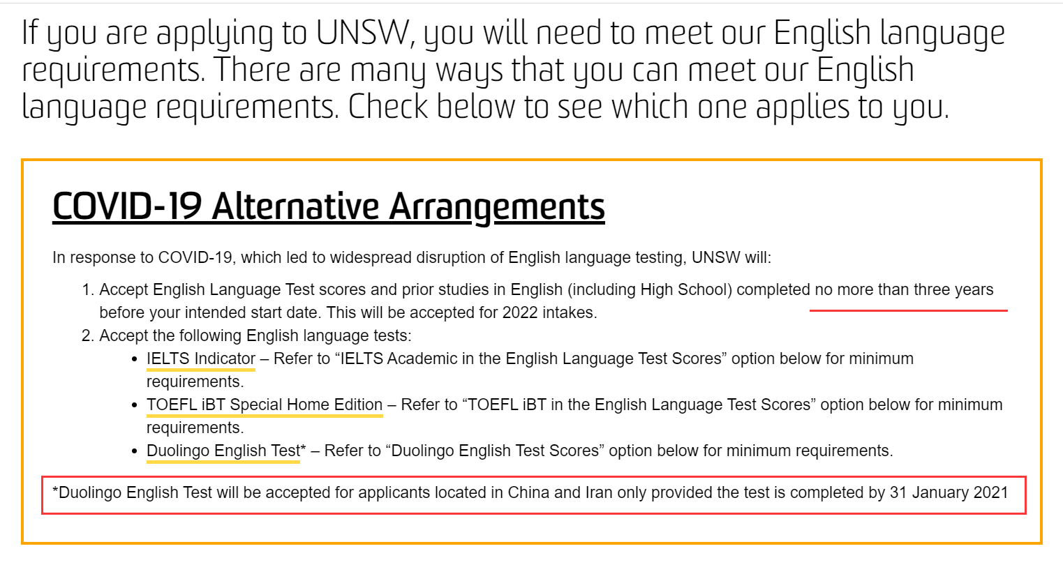 1、語言政策如果有相關調整,學校會在官網更新,我們一起期待UNSW2021年Term 2&3能繼續認可以上三種考試~