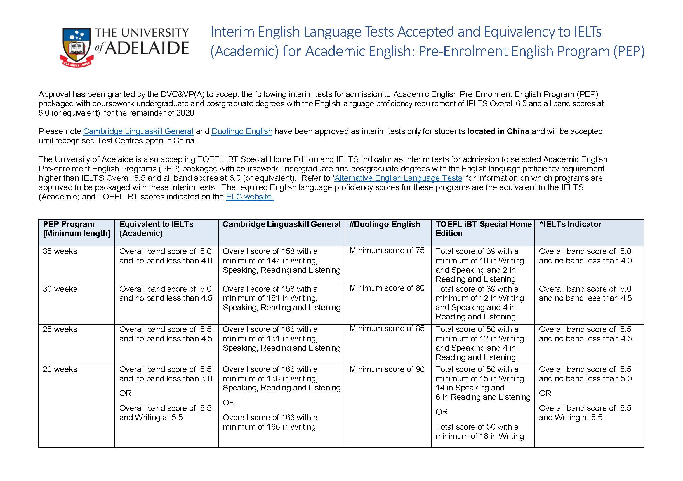 鏈接:https://international.adelaide.edu.au/admissions/how-to-apply/admission-requirements#english-language-requirements