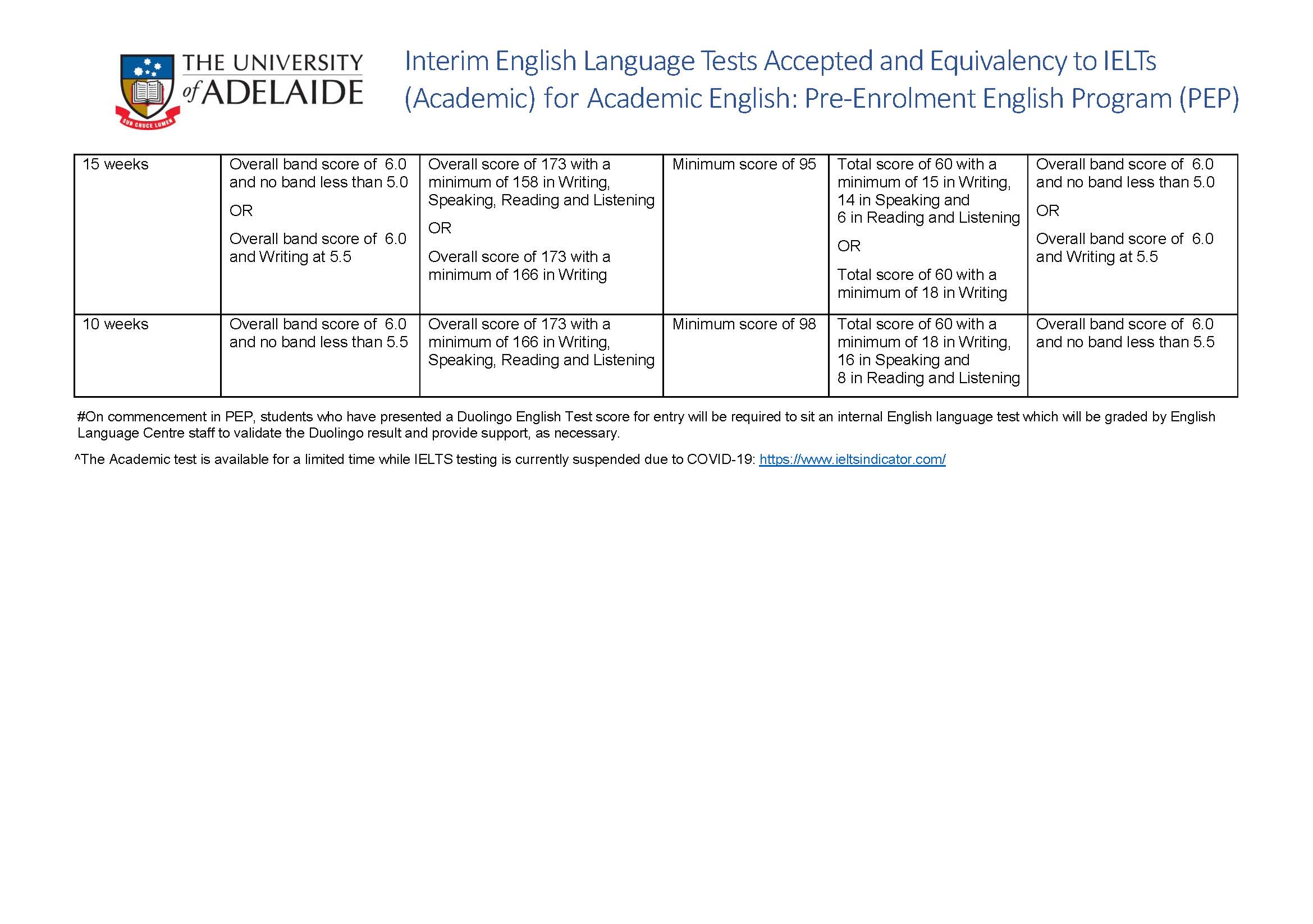 2021年Term 1的本科及碩士課程(也就是2月份開課),認可TOEFL home edition、IELTS indicator、DUOLINGO*(備注:必須是1月31日前考的Duolingo成績)