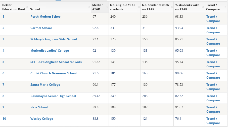 其中,西澳唯一一所通過學(xué)術(shù)選拔入學(xué)的公立高校Perth Modern School以絕對優(yōu)勢再次成為西澳最好的學(xué)校。