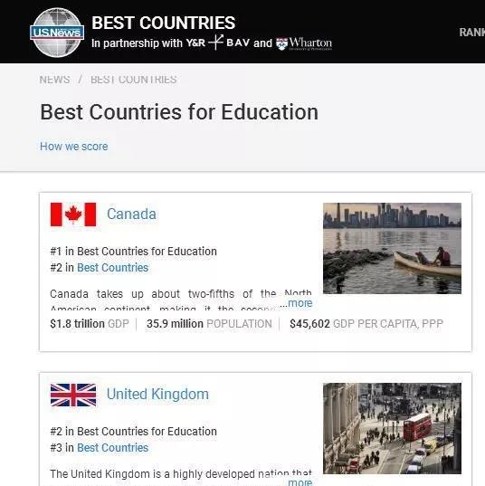 在美國著名新聞雜志U.S. News對各國教育體系排名當中,加拿大力壓英、美位列全球第一。
