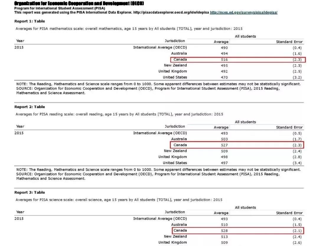 而在由OECD發起的PISA評估中,對各國年齡15歲的學生從閱讀、數學、科學三方面進行評估來評價各國的教育體系。2015年的PISA評估結果顯示,加拿大比美國、英國、澳洲、新西蘭等留學大國評分更高,在英語系國家中排名第一。
