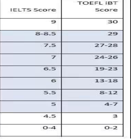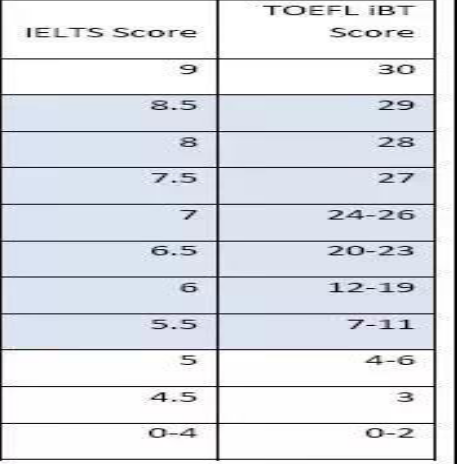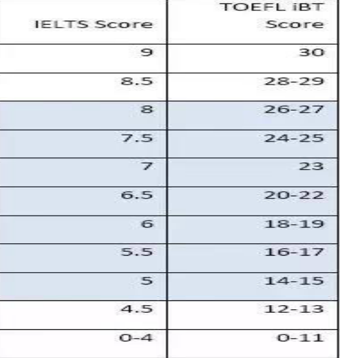 ETS官方的TOEFL和IELTS分數對應表是最權威的換算關系,那么實際上在大多數情況下,TOEFL在北美和英聯邦學校中都遇到了那么一點“通貨膨脹”——即相應的TOEFL分數不如相應IELTS分數“值錢”。比如,美國高校康奈爾大學(CornellUniversity)對IELTS的要求是7分,對TOEFL的要求是100分,基本落在ETS給出的相應區間94-101分之內,但是處于區間內的較高值了;而另一所美國高校范德堡大學(VanderbiltUniversity)對IELTS的要求是6.5分,且對TOEFL的要求也是100分,而ETS給出的IELTS6.5分對應的TOEFL分數是79-93,意味著對于范德堡大學來說,需要相對更高的TOEFL分數才能入學了。與此情況相同的是,英國高校牛津大學(OxfordUniversity),對IELTS的最低要求是7分,對TOEFL的要求是100;對IELTS的更高要求是7.5分,對TOEFL的更高要求是110,這也超出了IELTS考試7.5分對應的TOEFL考試102-109的區間。不僅如此,有些學校還對考生的TOEFL單項成績有要求。例如牛津大學,除了總分有要求外,TOEFL的讀聽說寫各個單項應不低于23/22/25/24更恐怖的是,中國考生最不擅長的TOEFL口語考試,牛津卻對它做出了最高的要求。