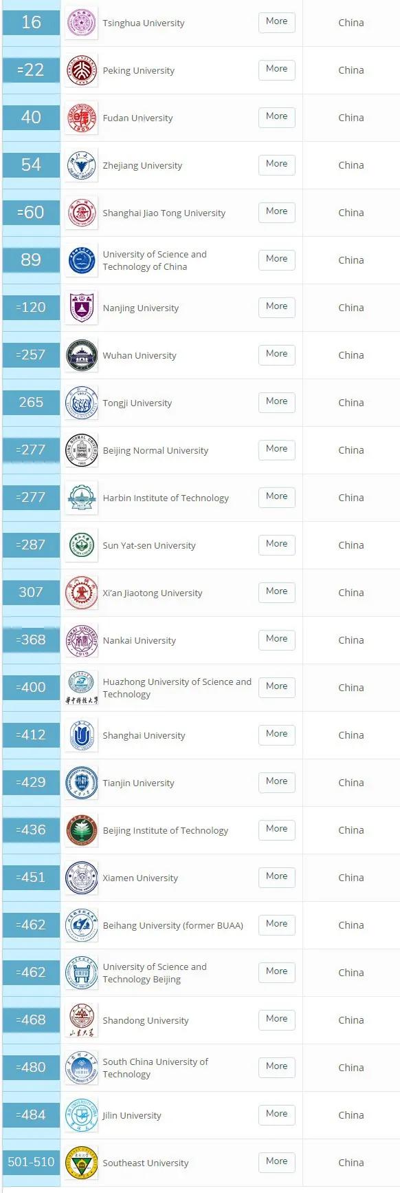2020 QS 中國大陸排名 TOP 25