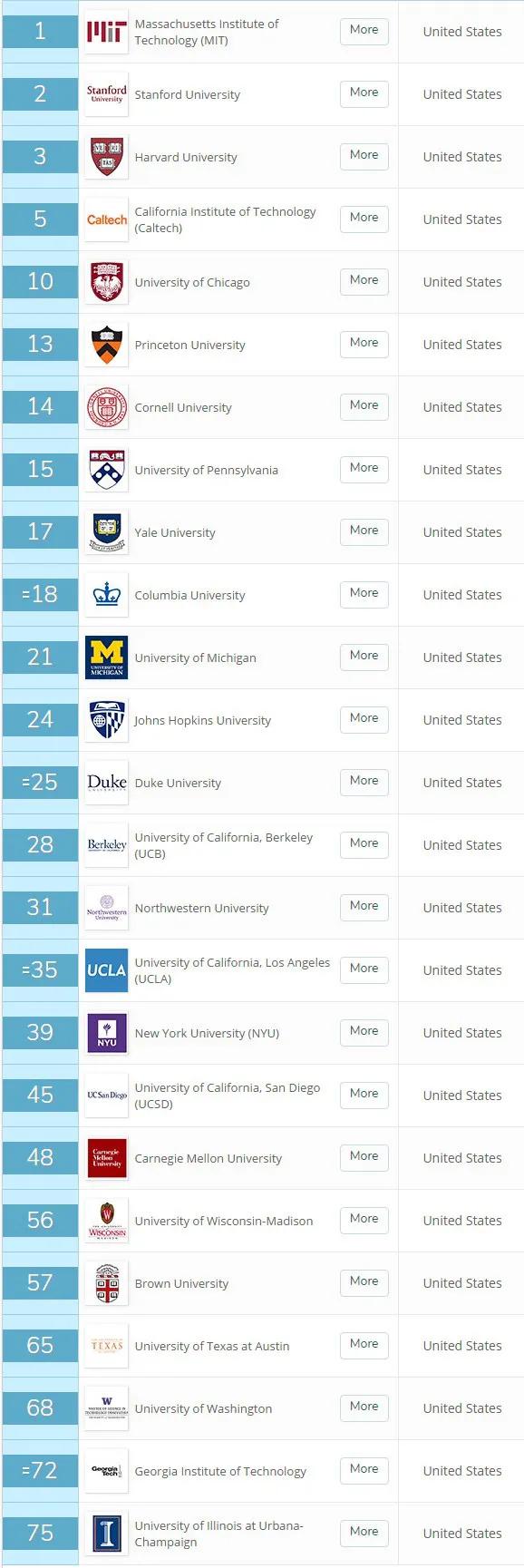 本次排名TOP10的大學(xué)分別為:麻省理工學(xué)院、斯坦福大學(xué)、哈佛大學(xué)、牛津大學(xué)、加州理工學(xué)院、蘇黎世聯(lián)邦理工學(xué)院、劍橋大學(xué)、倫敦大學(xué)學(xué)院、帝國理工學(xué)院、芝加哥大學(xué)!