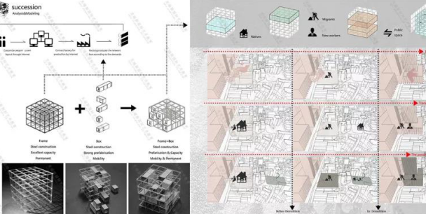 比如一個項目選擇在長沙的新城區與老城區相銜接的空間,這個空間隔離了新老城區,,對新老城區的城市結構及特色進行了深入的分析,提煉出新老城區的各自特色及人群與活動的不同特點。