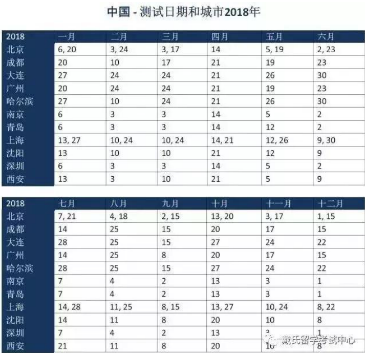 2018年中國各地AEAS考試時(shí)間表出爐