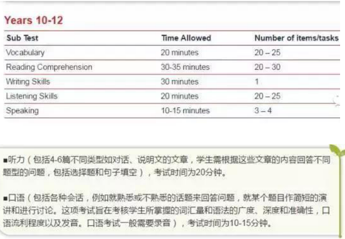 其他低年級英語考試比照10-12年級考試題型,但是會參照相應年級學生的知識背景有針對性的出題目。