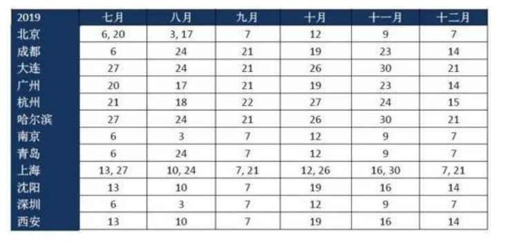 學(xué)生可參考以下日期進(jìn)行注冊(cè)。請(qǐng)注意,某些城市的考試日期可能會(huì)出現(xiàn)調(diào)整。實(shí)際日期請(qǐng)按在線報(bào)名時(shí)系統(tǒng)顯示為準(zhǔn)。