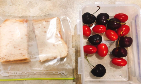 每天早上起來給暖寶做早餐和帶到學(xué)校的午餐。一塊三明治(里面放了一片奶酪和兩片火腿),一些水果,一袋薯片,一杯水,就組成了一頓午餐和morning tea。通常暖寶放學(xué)的時候還會剩一半的三明治,當下午茶吃掉了。