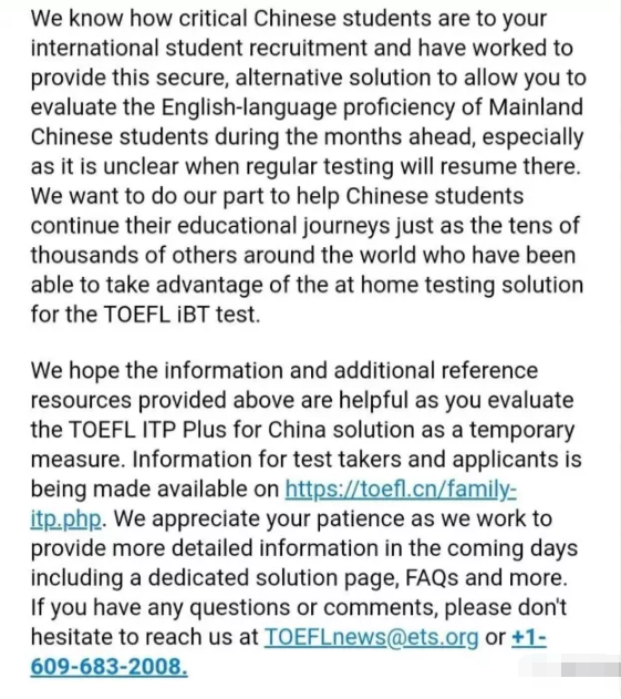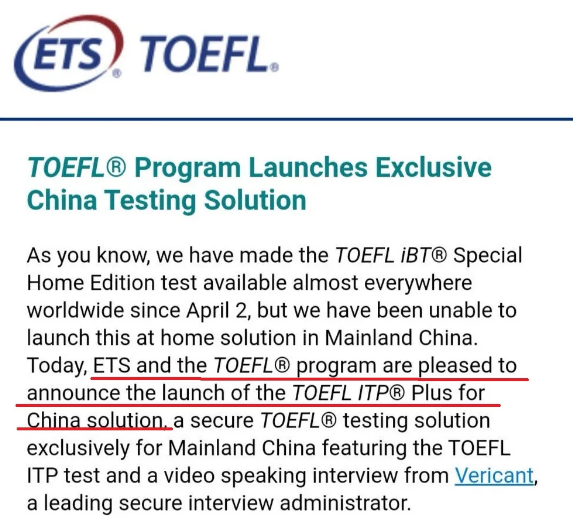 ETS最新政策:中國特供版托福在線考試明日開放