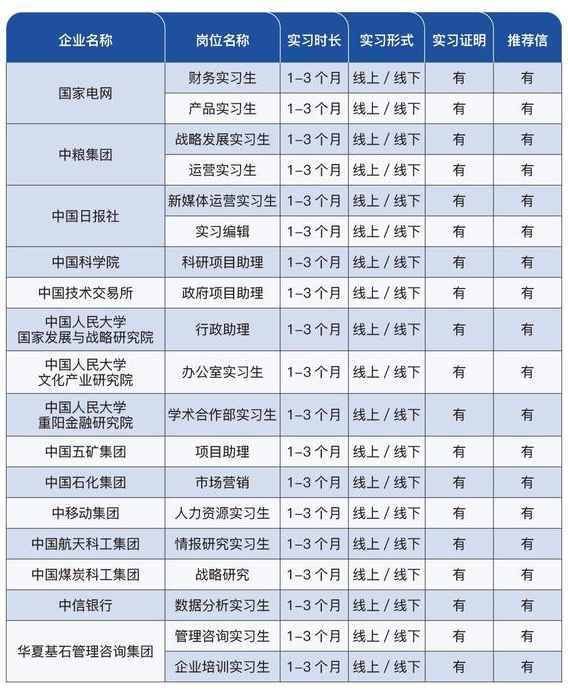 部分國企央企實習崗位重磅推薦