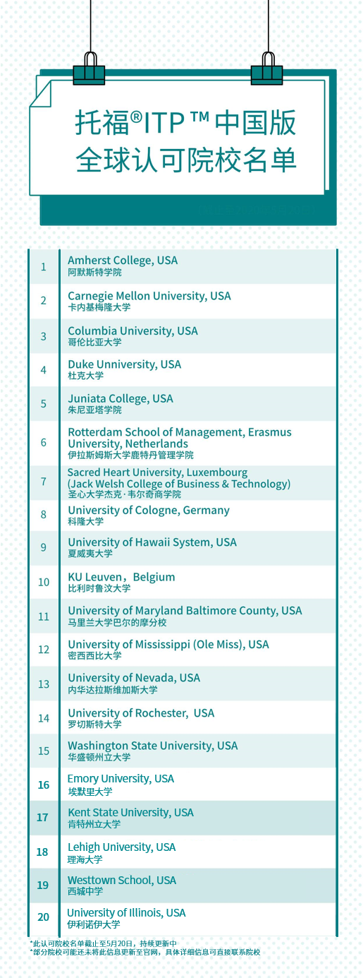 “哪些院校接受托福ITP中國版呢?”