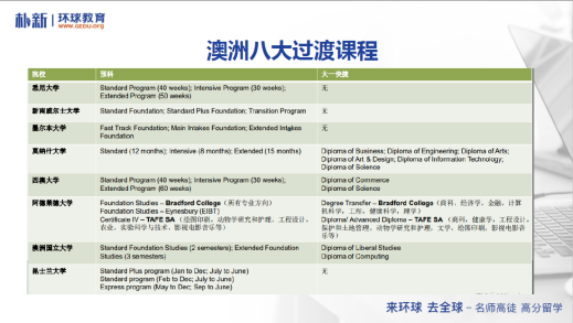 澳大利亞的八大一直是申請澳洲學生的首選,那么該如何使用高考成績來申請澳洲本科呢?劉老師在講座中詳細解讀了不同院校錄取標準中的高考及雅思成績要求,并給出申請建議。對于成績未達到澳洲本科大一標準的同學可以選擇澳洲八大的過渡課程。