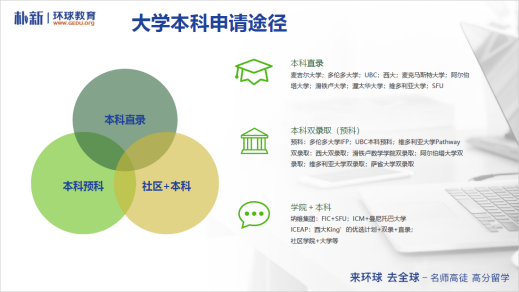 關于加拿大的本科大學的申請,比較容易混淆的就是錄取方式,劉老師在講座中特別科普了加本的三種申請途徑,并根據不同的途徑來劃分大學,幫助同學們找到更加適合自己的申請方式。