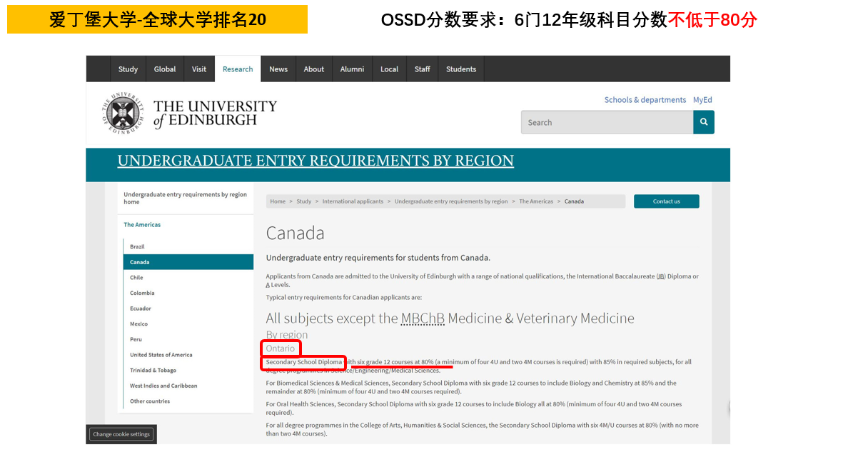 OSSD分數(shù)要求:6門12年級科目分數(shù)不低于80分。詳情見下圖。