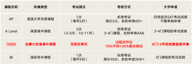 目前各大國際學校中開設的主流國際課程,主要為:AP、A-level、IB及OSSD。