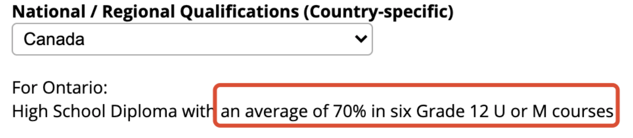 1.成績要求:OSSD均分70以上