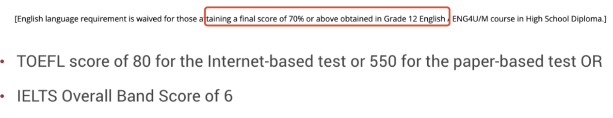 2.語言要求:雅思6分或托福80分以上,但是OSSD學員只要12年級英語成績70分以上即可免雅思托福。