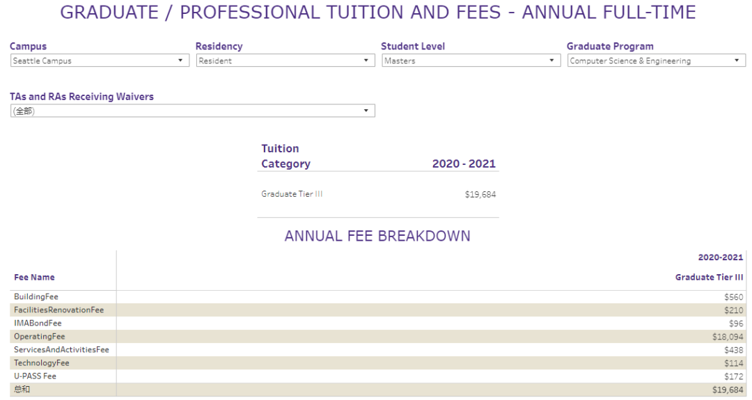 2020-2021年的計算機研究生課程收費為每學期19,684美元。另外,所有被艾倫學校博士學位錄取的學生都可以獲得學校的經濟資助,所以在此就讀的經濟負擔比較小。