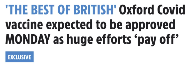 除了國產(chǎn)疫苗,據(jù)英國《太陽報》報道,英國藥監(jiān)局在今天(12月28日)正式批準(zhǔn)使用牛津疫苗,所以疫苗將按原計劃,從1月4日開打,預(yù)計2月底將接種1500萬人。英國政府也已明確,中國留學(xué)生也可接種該疫苗。