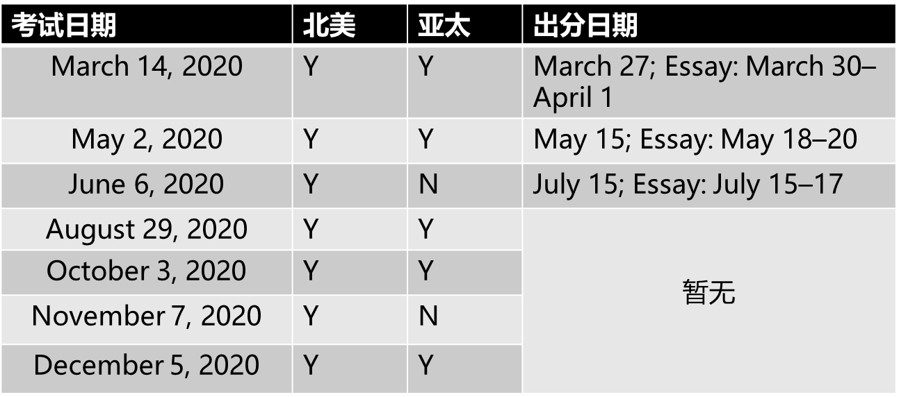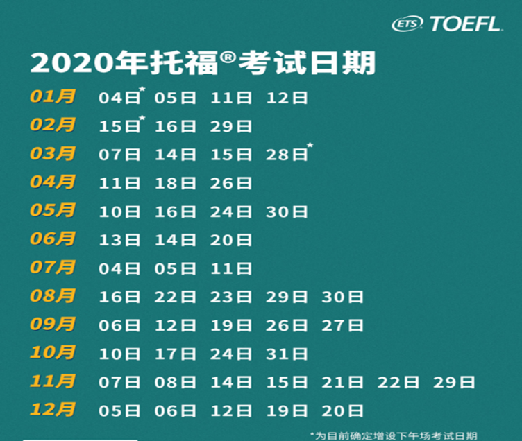 以上考試日期為2020年的日期