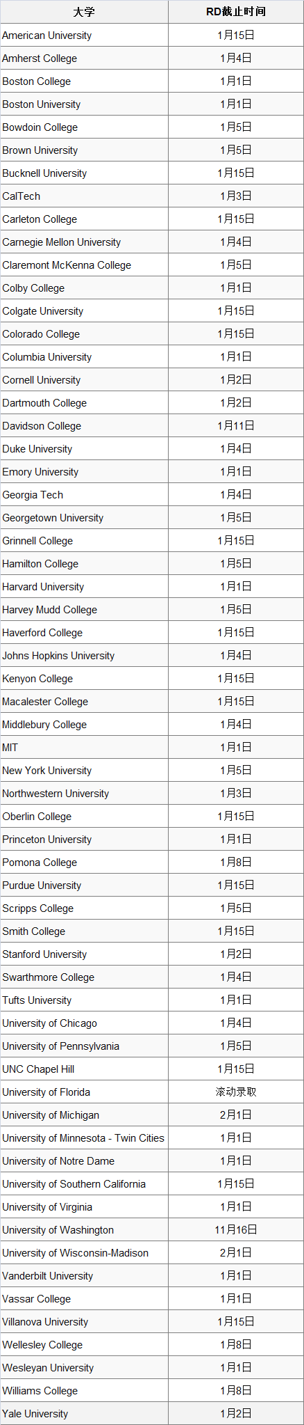RD一般也是1月陸續(xù)截止,不過像加州大學(xué)系統(tǒng)今年12月4日就截止了,還有一些大學(xué)是“Rolling滾動(dòng)錄取”,比如佛羅里達(dá)大學(xué)、匹茲堡,說是“滾動(dòng)”其實(shí)都是先到先得,一般到學(xué)校設(shè)定的“優(yōu)先截止日期”就差不多滿位了,建議早早申請哦!