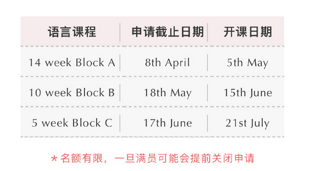 取消了申請語言課的截止日期,但由于位置有限,建議在材料齊全后盡早提交申請。關于語言課程相關更新請大家耐心等待大學的進一步通知。