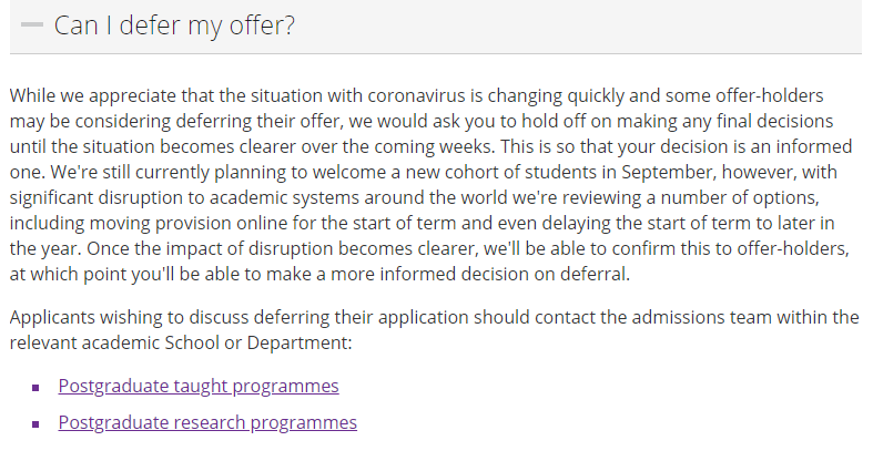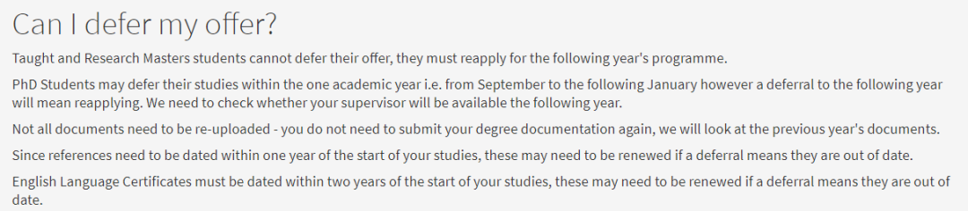 PostgraduateAdmissionsTheSchoolofMechanical,AerospaceandCivilEngineering:部分不接受延期